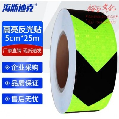 海斯迪克 HK-790 高反光贴 道路地贴警示反光贴 反光胶带警戒线 荧光绿底黑箭头5cm*25m (SKU:yzwhyp924632