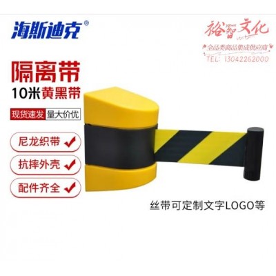 海斯迪克 可伸缩黑黄警戒带 靠墙式伸缩头 电梯口商场收银台隔离带安全护栏 10米 HKW-160 (SKU:yzwhyp924660