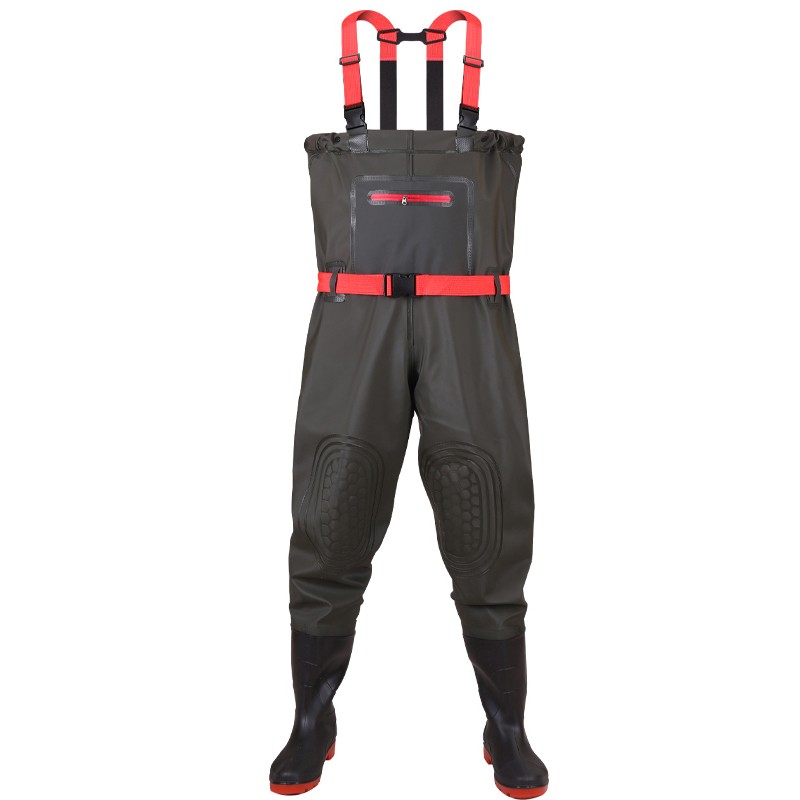 红诗雨 下水裤半身雨裤 防水服 墨绿针织/双层护膝加厚钢板鞋底100丝(齐胸半身)(38-47)SKU:yzwhyp924665
