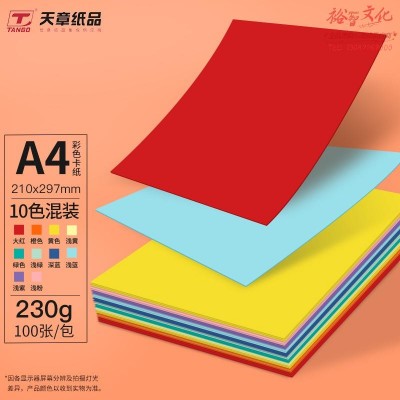 天章(TANGO)A4彩色卡纸硬卡纸加厚 儿童学生手工折纸剪纸 P5206十色纸混装230g(100张/包)(SKU:yzwhyp924678