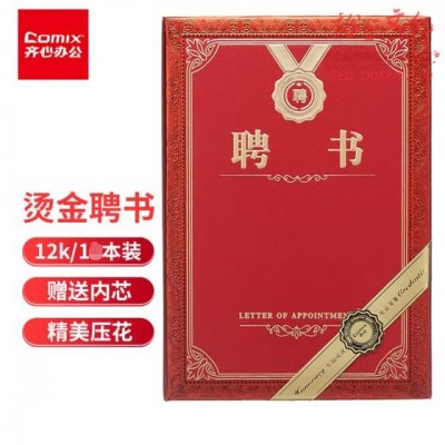 齐心(Comix)聘书精致烫金特种纸封面外壳C5106 附1页内芯12K/1本装 颁奖表彰奖状 办公文具 (SKU:yzwhyp924679