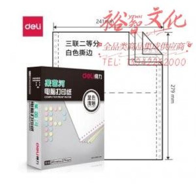 得力 deli 莱茵河 L241-3 电脑打印纸 (1/2S白色撕边)(盒)(SKU:yzwhyp924699