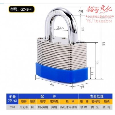 海斯迪克 HKL-123 大号三位防盗千层钢锁底部密码锁挂锁 (SKU:yzwhyp924717