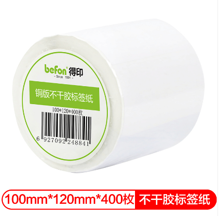 首页 > 纸及纸质品 > 纸及纸板(不包含复印纸) > 得印(befon)不干胶标签纸 铜版纸100mm*120mm 400枚 单排 条码纸 打印贴纸 (SKU:yzwhyp924747
