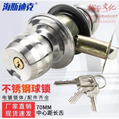 海斯迪克 不锈钢球锁 室内卧室房门球锁 包铜芯球形锁 普通带钥匙70MM中心距长舌 HKT-96 (SKU:yzwhyp924812