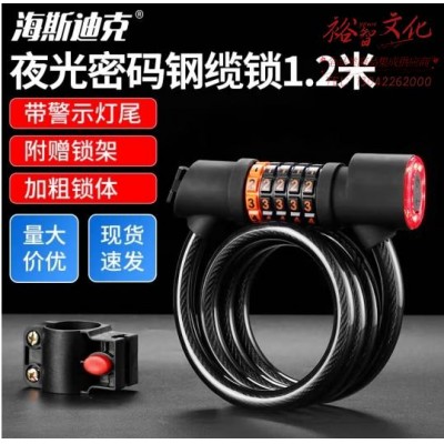 海斯迪克 自行车锁 山地单车电动车锁 骑行防盗锁 尾灯夜光密码锁 1.2米 HKT-179 (SKU:yzwhyp924848
