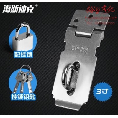 海斯迪克 不锈钢加厚门锁扣带挂锁 防盗门扣插销搭扣 3寸搭扣配挂锁40mm 带螺丝 HKT-173 (SKU:yzwhyp924881