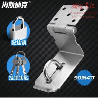 海斯迪克 不锈钢加厚门锁扣带挂锁 防盗门扣插销 90度搭扣 4寸配挂锁40mm 带螺丝 HKT-173 (SKU:yzwhyp924883