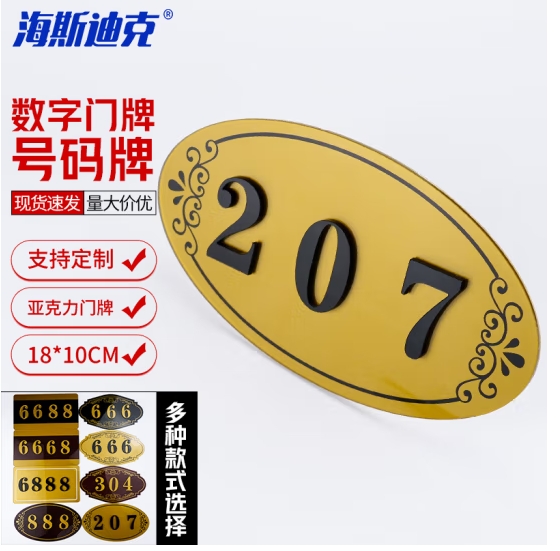 海斯迪克 数字贴号码牌 1个(2个起订) 18*10CM 亚克力门牌 A款(下单请备注数字) HKCX-166 (SKU:yzwhyp924926