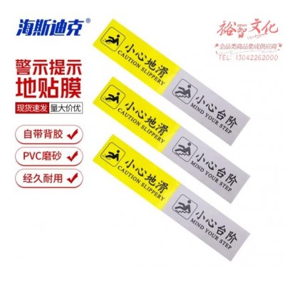 海斯迪克 PVC地贴膜 警示提示贴 台阶温馨提示贴 1张(4个起订) 60*12CM 小心地滑小心台阶 HKL-1035 (SKU:yzwhyp924929