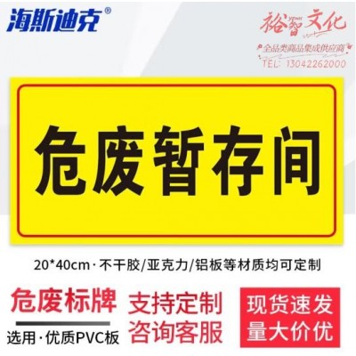 海斯迪克 危废警示标志牌 1个 危废暂存间20×40CM PVC板 化学品仓库环境保护标识牌 HK570 (SKU:yzwhyp924964