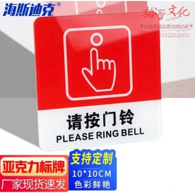 海斯迪克 亚克力门牌标牌指示牌 警示牌门贴 请按门铃10*10cm(红色) 2个 HKW-333 (SKU:yzwhyp924973