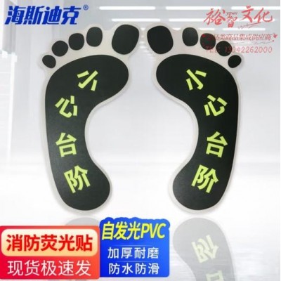 海斯迪克 gnjz-1329 消防自发光地贴 10对(脚印 小心台阶)荧光警示贴纸8*18cm (SKU:yzwhyp924975