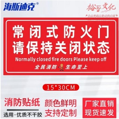 海斯迪克 HK-5126 消防安全标识牌 防火提示贴纸15*30cm (4个起订)常闭式防火门请保持关闭4 (SKU:yzwhyp925028