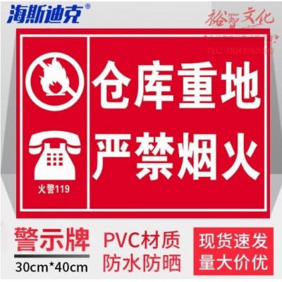 海斯迪克 车间生产安全警示标识牌 仓库重地 严禁烟火 30*40CM PVC提示牌 HKZ-91 (SKU:yzwhyp925051
