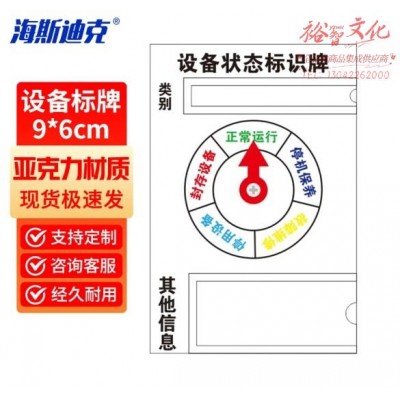 海斯迪克 设备状态标识牌 小型9*6CM 亚克力材质关重设备 (10个起订) HKL-518 (SKU:yzwhyp925054