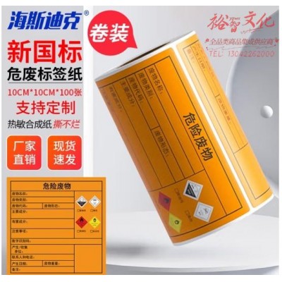 海斯迪克 新国标危险废物标识标签警示贴 热敏合成纸 1卷 10CM*10CM*100张 HKCX-182 (SKU:yzwhyp925099