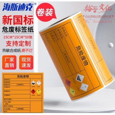 首页 > 建筑建材 > 其他防护用品 > 海斯迪克 新国标危险废物标识标签警示贴 热敏合成纸 1卷 15CM*15CM*50张 HKCX-182 (SKU:yzwhyp925100