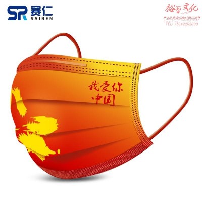 赛仁 一次性使用口罩50片/盒【2000片/1箱装】无菌每片独立装 17.5*9.5cm 我爱你中国口罩SKU:yzwhyp925193