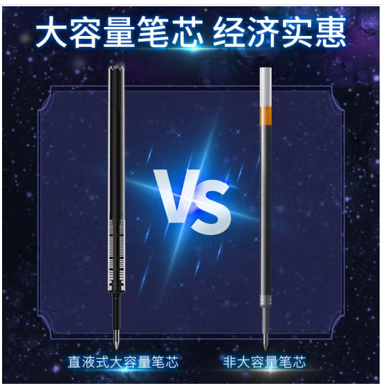 白雪(snowhite)GALAXY星际按动中性笔0.5mm直液式走珠笔速干学生考试签字笔 JR51 黑芯10支 (SKU:yzwhyp925218