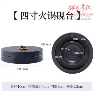 御宝阁 天然原石料火锅砚台素砚毛笔练字书法专用带盖墨碟墨池墨盒墨水墨条墨块文房四宝工具用品 4寸原石火锅砚台 (SKU:yzwhyp925297