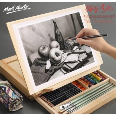蒙玛特(Mont Marte)松木画架 画板画架套装美术颜料素描桌面画架8k画板 画画儿童带抽屉桌上画架画板两件套 (SKU:yzwhyp925303