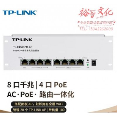 首页 > 信息化设备 > 路由器 > 普联(TP-LINK)TL-R488GPM-AC 千兆8口一体化路由模块4个固定LAN口支持PoE内置AC管理AP双WAN口叠加(SKU:yzwhyp925368