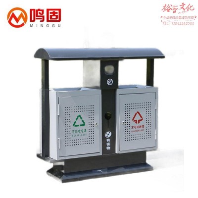 鸣固 户外环卫垃圾桶铁质双分类物业街道垃圾箱 镀锌板 双分类垃圾桶 ZJ1103(SKU:yzwhyp925553