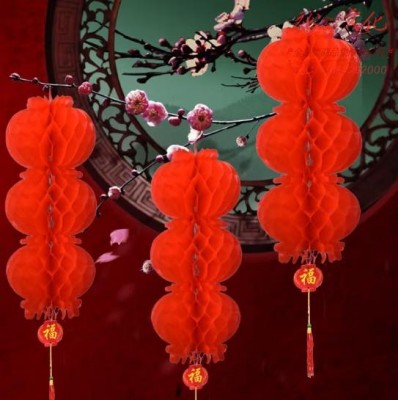 欧妮姿 新年灯笼元旦龙年春节装饰幼儿园学校商场装扮红灯笼3连串8个装 (SKU:yzwhyp925572