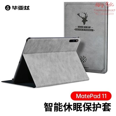 毕亚兹 2021年款华为MatePad 11保护套 10.95英寸鸿蒙保护壳 轻薄防摔智能休眠支架 商务皮套 PB289-灰色SKU:yzwhyp925637