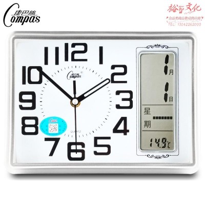 康巴丝(COMPAS)座钟客厅静音非挂钟简约台钟创意石英钟时尚万年历时钟现代日历温度床头钟2991 银色(SKU:yzwhyp925857