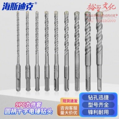 海斯迪克 HK-655 圆柄十字电锤钻头 两坑两槽冲击钻头 硬质合金墙壁开孔混凝土打孔钻头 9PC九件套(SKU:yzwhyp925875