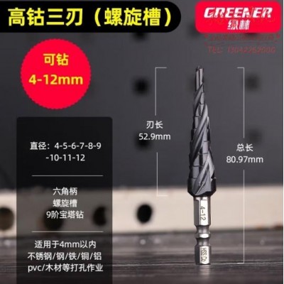 绿林(GREENER)宝塔钻头多功能电钻开孔器工业级高钴三刃4-12九阶 (SKU:yzwhyp925920