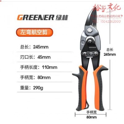 绿林铁皮剪刀铝扣板强力不锈钢吊顶专用轻钢龙骨航空剪刀 10寸左弯 (SKU:yzwhyp925995