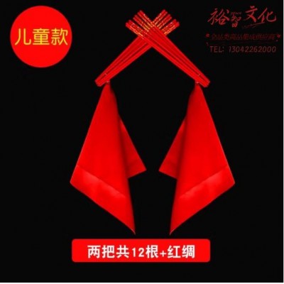 蒙古舞蹈筷子道具筷子舞 儿童款 24cm两把共12根 红绸【每手6根】 (SKU:yzwhyp926094