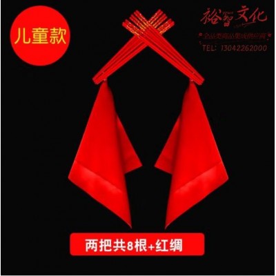 蒙古舞蹈筷子道具筷子舞 儿童款 24cm两把共8根 红绸【每手4根】 (SKU:yzwhyp926097
