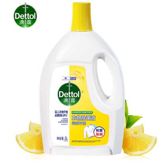 滴露(Dettol)衣物消毒液清新柠檬3L 衣物除菌液杀菌99.9% 高效除螨 可配洗衣液用 (SKU:yzwhyp926132