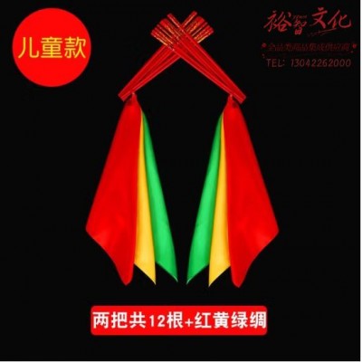 蒙古舞蹈筷子道具筷子舞 儿童款 24cm两把共12根 红黄绿绸【每手6根】 (SKU:yzwhyp926239
