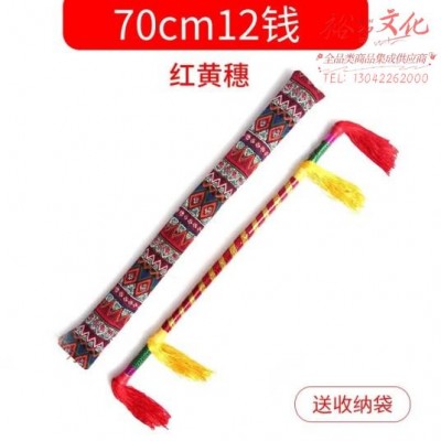 广场舞打钱杆连响花棍莲湘舞霸王鞭金钱棒铜钱杆莲厢运动道具 70厘米12钱红黄苏 (SKU:yzwhyp926490