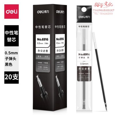 得力(deli)0.5mm黑色中性笔笔芯 子弹头水笔签字笔替芯 20支/盒6916(SKU:yzwhyp926698