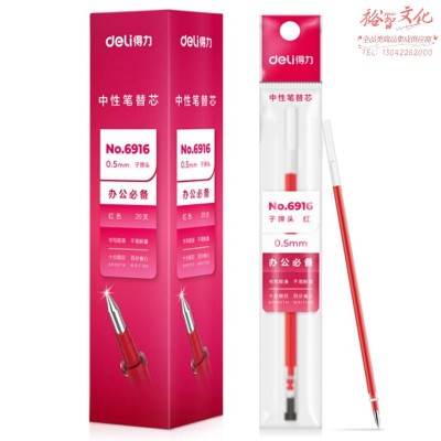 得力(deli)0.5mm红色中性笔笔芯 子弹头水笔签字笔替芯 20支/盒 6916(SKU:yzwhyp926699
