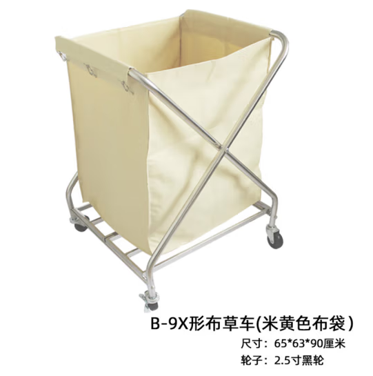 惠利得 布草车加固不锈钢酒店宾馆服务锥形布草车洗衣房脏布草回收手推车 B-9X形(米黄) (SKU:yzwhyp926823