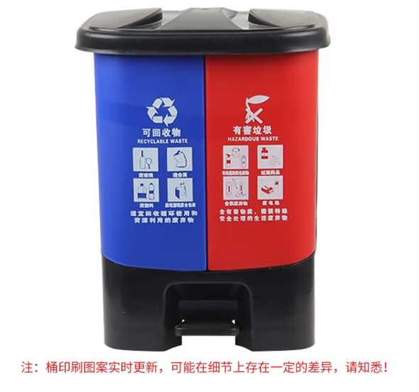 首页 > 用具 > 其他厨房用具 > 海斯迪克 HK-367 分类双格脚踏式垃圾桶 有盖塑料脚踩双垃圾桶 可回收物 有害垃圾 分类垃圾桶30L蓝红款 (SKU:yzwhyp926881