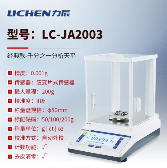 首页 > 仪器仪表 > 分析天平及专用天平 > 力辰科技(lichen) 实验室电子分析天平万分位制样称重量QS认证检测包通过仪器设备 LC-JA2003配砝码200g/1mg(SKU:yzwhyp927047