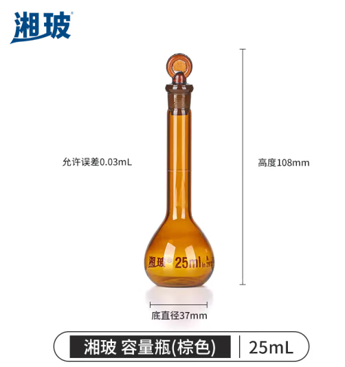 首页 > 仪器仪表 > 生物、医学样品制备设备 > 比克曼生物 湘玻 容量瓶玻璃加厚定量瓶定容瓶A级可过检透明棕色磨口具塞耐高温实验室 【棕色】25mL 1个 (SKU:yzwhyp927052