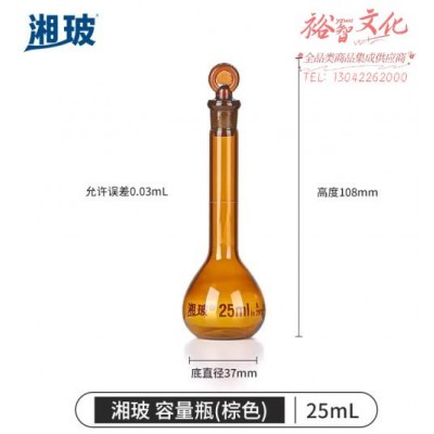 比克曼生物 湘玻 容量瓶玻璃加厚定量瓶定容瓶A级可过检透明棕色磨口具塞耐高温实验室 【棕色】25mL 1个 (SKU:yzwhyp927052