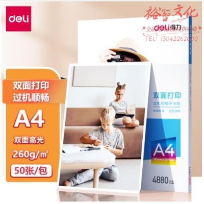 得力 A4 260g双面高光照片纸 加厚相片打印纸 50张/盒 11827(SKU:yzwhyp927072