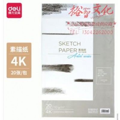 得力73608素描纸(白) 110g 4k (20张/包) (SKU:yzwhyp927075