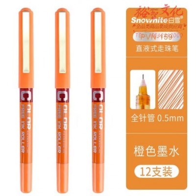 白雪(snowhite) 直液式水性走珠笔中性笔0.5mm彩色签字笔PVN159 橙色12支/盒 (SKU:yzwhyp927172