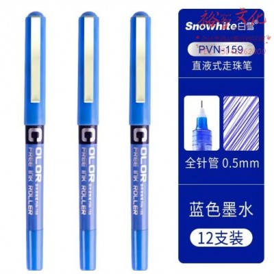 白雪(snowhite) 直液式水性走珠笔中性笔0.5mm彩色签字笔PVN159 蓝色12支/盒 (SKU:yzwhyp927173